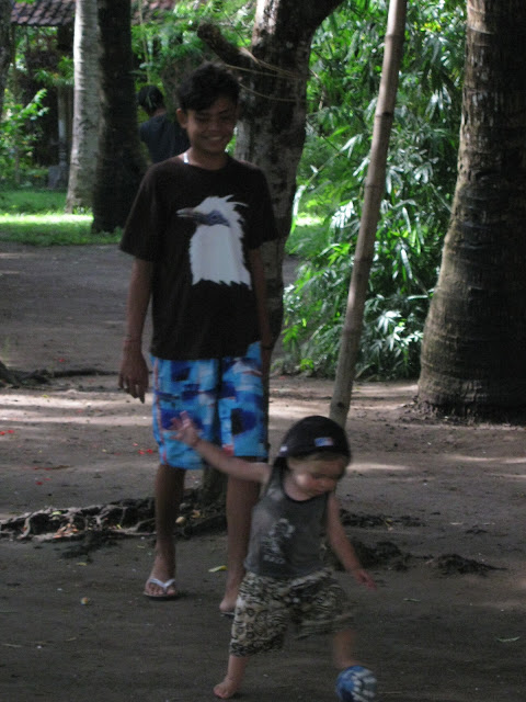 Boat trip, was fine, Mallee thankfully wore his life jacket and eventually fell asleep in there. The swell was not bad at all and we arrived safely, then some how my luggage was on one motorbike and Mallee and I were on another. There goes out the window one of the things that I would never do with Mallee in Indonesia, he was squashed in the middle of the driver and I on the back. Go with the flow!